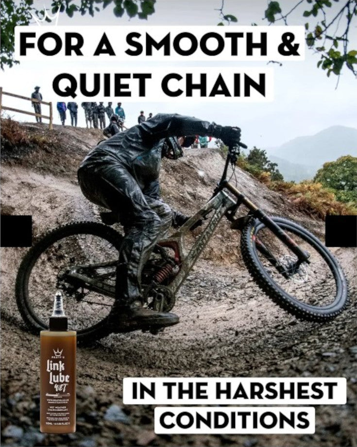 Keep your eBike's chain running smoothly and quietly, even in the toughest wet and filthy conditions, with Peaty's LinkLube Wet Weather chain lubricant. This bespoke Irish coffee-scented formula combines a custom blend of oils, waxes, and powerful corrosion inhibitors to provide hyper-durable performance that lasts all day. Designed specifically for the demanding needs of Enduro World Series racers, LinkLube Wet ensures your chain remains clean and free from the thick, gunky buildup often associated with wet lubes. Plus, it's readily biodegradable, making it an eco-friendly choice for the avid cyclist. Tackle any weather with confidence, knowing your eBike is protected and performing at its best!